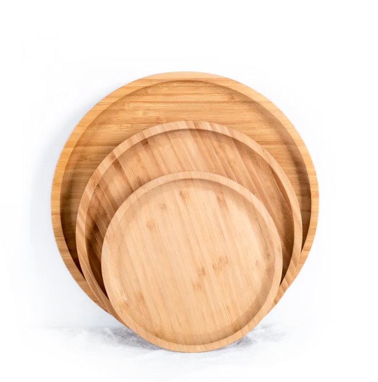 | Feature | Disposable, round bamboo plates for restaurants. Customizable with laser, engraving, or silkscreen printing. Eco-friendly and on-glazed for easy use. |