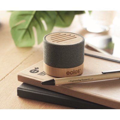 Introducing our eco-friendly wheat straw and bamboo wireless speaker, a perfect blend of sustainability and sound quality. This compact speaker delivers rich, clear audio while promoting environmental responsibility. Its unique design features a fabric exterior and a bamboo base, making it a stylish addition to any space. Enjoy seamless connectivity with Bluetooth technology and a user-friendly interface. Perfect for corporate gifts, this speaker is not only a thoughtful present but also a statement piece that showcases your commitment to eco-conscious living. Ideal for music lovers and environmentalists alike, this speaker is your go-to for responsible entertainment.