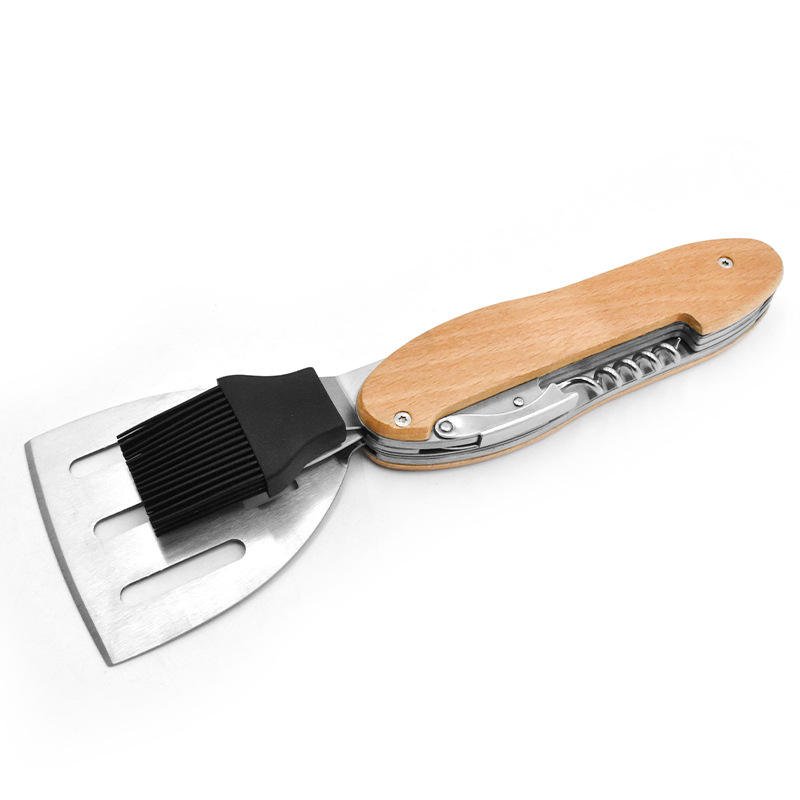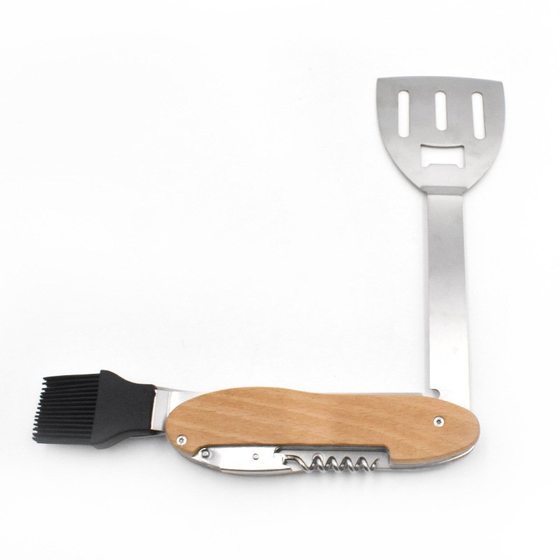 Experience the ultimate in outdoor convenience with our eco-friendly multifunction folding bottle opener. This all-in-one tool features a wooden handle for a comfortable grip and includes a spatula, fork, and corkscrew, making it perfect for BBQs and picnics. Its compact design ensures easy portability, fitting effortlessly into your bag or pocket. The durable stainless steel construction ensures longevity, while the eco-conscious wooden handle adds a touch of natural elegance. Ideal for campers, hikers, and grill masters alike, this multitool is not just practical but also a stylish accessory. Upgrade your outdoor gear with a tool that's as sustainable as it is versatile.