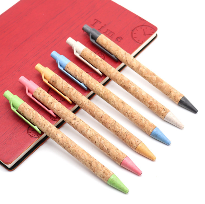 Promotional Logo customized Cork pen, wheat straw ballpoint pen